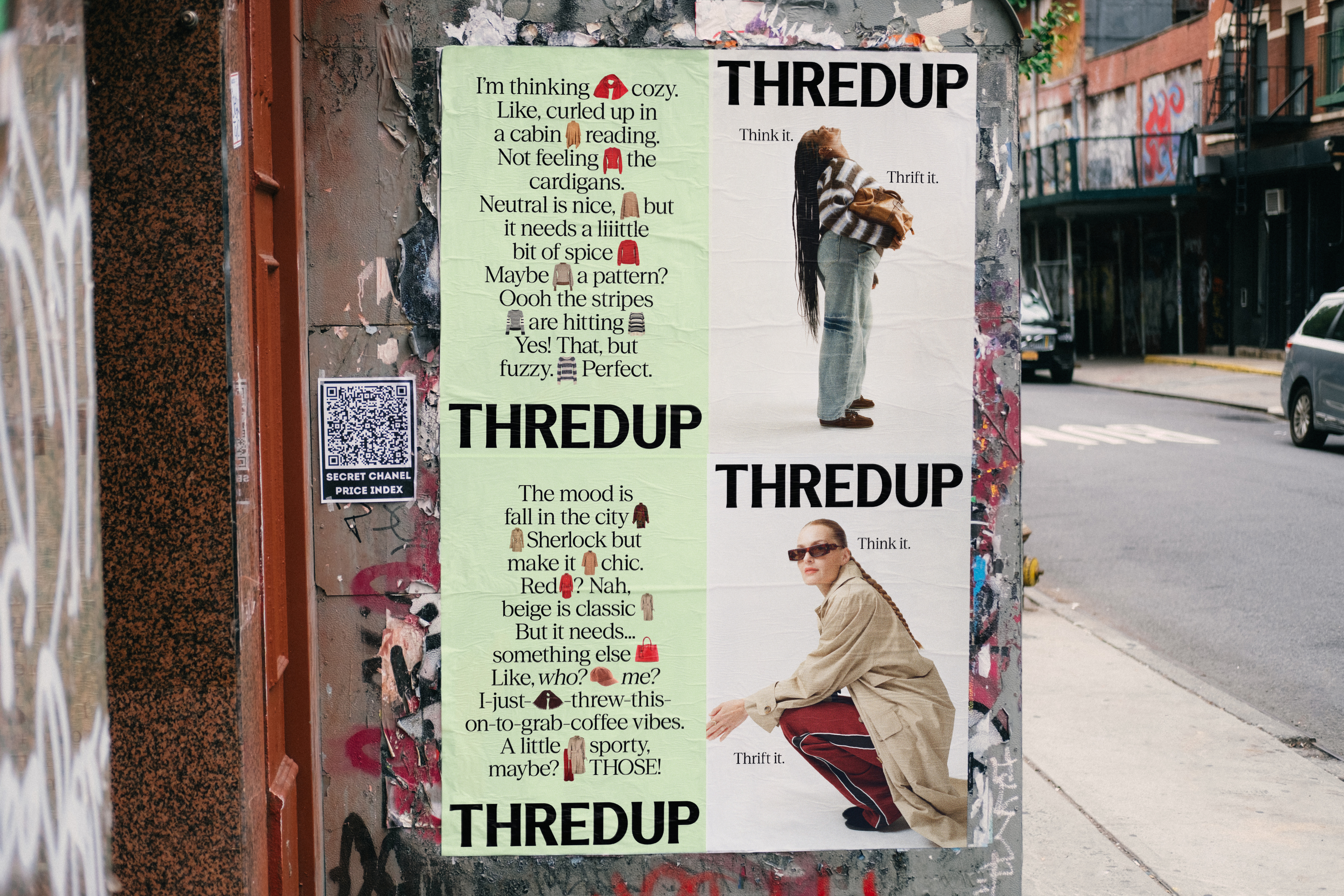 Through tearaway fliers in NYC's most fashionable neighborhoods, inner-monologue films and OOH wildpostings, and an influencer push, we showed that whatever look you imagine, you can thrift it.